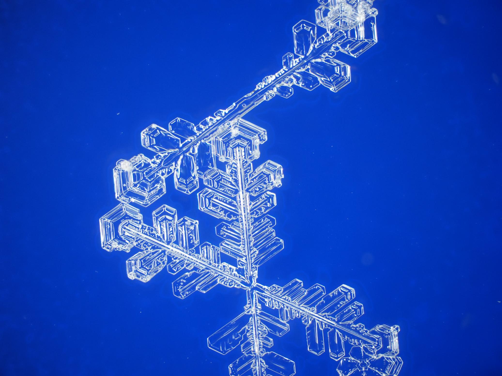 雪結晶には枝が2本ある2花もしばしば観測されます。牟田淳(2026年3月2日作成、最終更新日:)